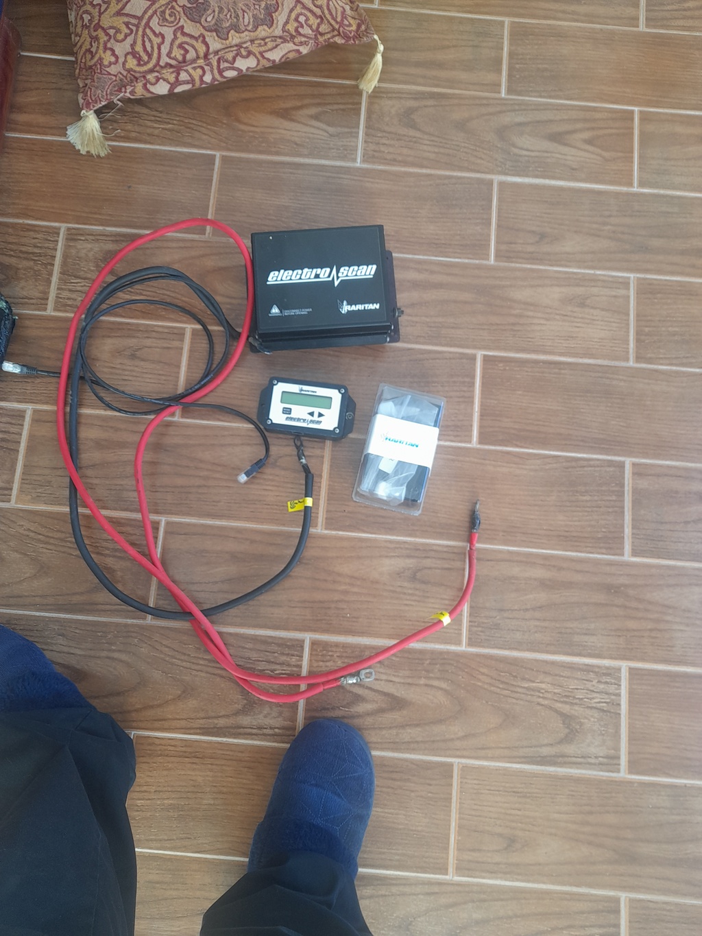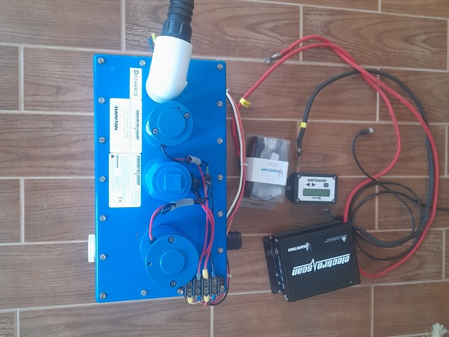 Système de traitement électrolytique des eaux noires pour bateau, marque Raritan, modèle ElectroScan 12 V DC.