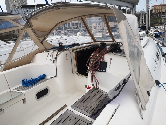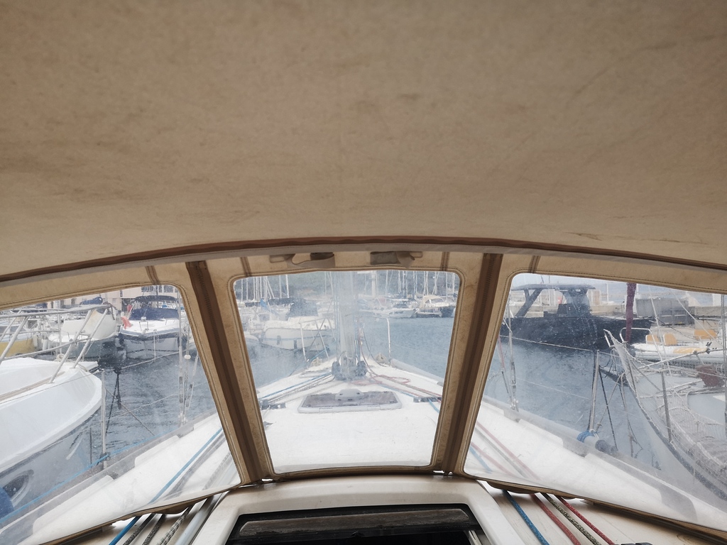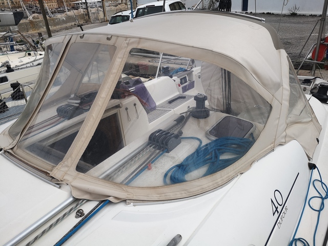 Capote de roof NV équipement pour Dufour 40,fermetures éclair, tissus,cristal le tout en très bon état, couleur beige, fenêtre centrale ouvrante, poches latérales. Je la vends car j'ai changé la couleur de la garde-robe de mon bateau en une autre couleur. La valeur neuve chez NV de ce modèle est de plus de 2000€