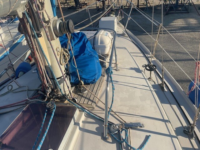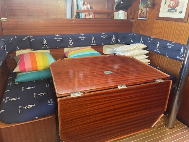 Réfection d’une jupe arrière 09/2023 avec revêtement teck + échelle télescopique + main courante + marche pied en teck, passerelle, bossoirs, table de cockpit, guindeau électrique + mouillage principal, douchette de cockpit, pompe de cale Manuelle + électrique, cockpit teck.