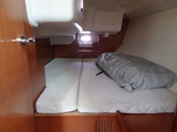 1 Cabine double avant. 1 Carré en U à bâbord. 1 Banquette sur tribord. 1 Cuisine en L sur bâbord. 1 Table à carte sur tribord. 1 Cabinet de toilette WC marins avec réservoir à eaux noires, douche lavabo, arrière tribord. 2 Cabines doubles arrière bâbord.