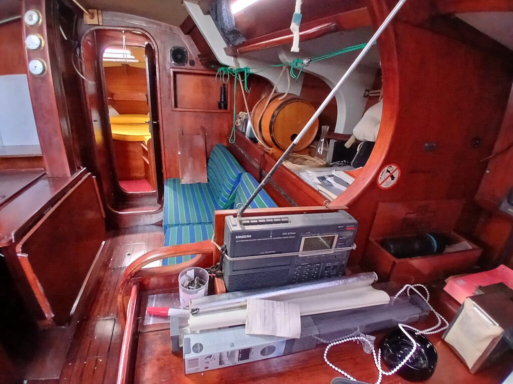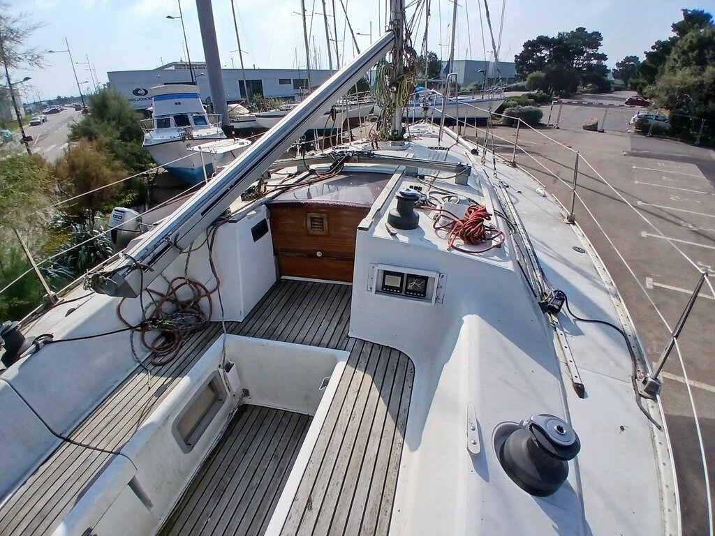 Panneaux de pont déjà remplacés (pas de traces d'infiltrations d'eau constatées lors de la mise vente). Baille à mouillage refaite.