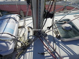 Guindeau électrique. Mouillage principal ancre plate + chaîne + câblot. Mouillage secondaire ancre plate + chaîne + câblot. Emplacement à l’avant du mat pour le radeau de survie. Capote de roof, état correct. 1 Winch de pied de mat pour les prises de ris Harken 8 sans self-tailing. 2 Winchs de piano Harken 16 sans self-tailing. 2 Winchs de génois Harken 32ST. Taud de soleil. Table de cockpit, type camping. Barre franche avec stick. Chaise pour le stockage d’un hors-bord. Echelle de bain. Douchette de cockpit. Porte canne à pêche. Bancs de cockpit et fonds de cockpit lattés teck, relativement usés.