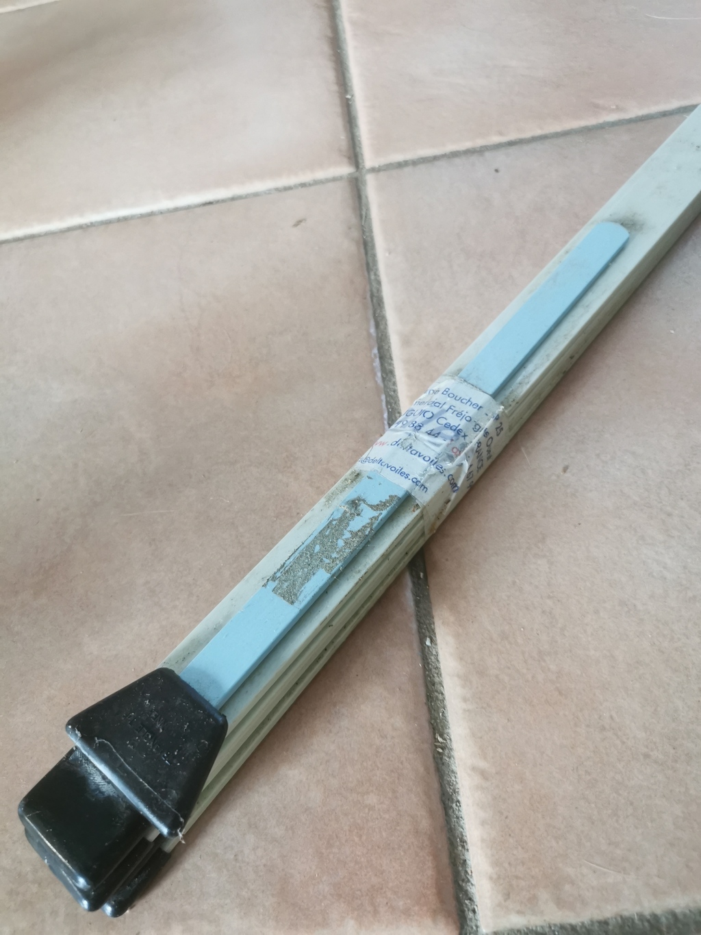 Les lattes mesurent 3 cm de large sur 4 mm d'épaisseur et mesurent respectivement : 3,24, 2,53,1,88 et 1,02 m.