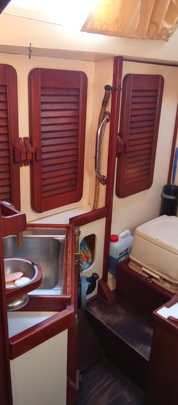 - Voiles complètes : foc enrouleur, trinquette, GV, tourmentin, génois