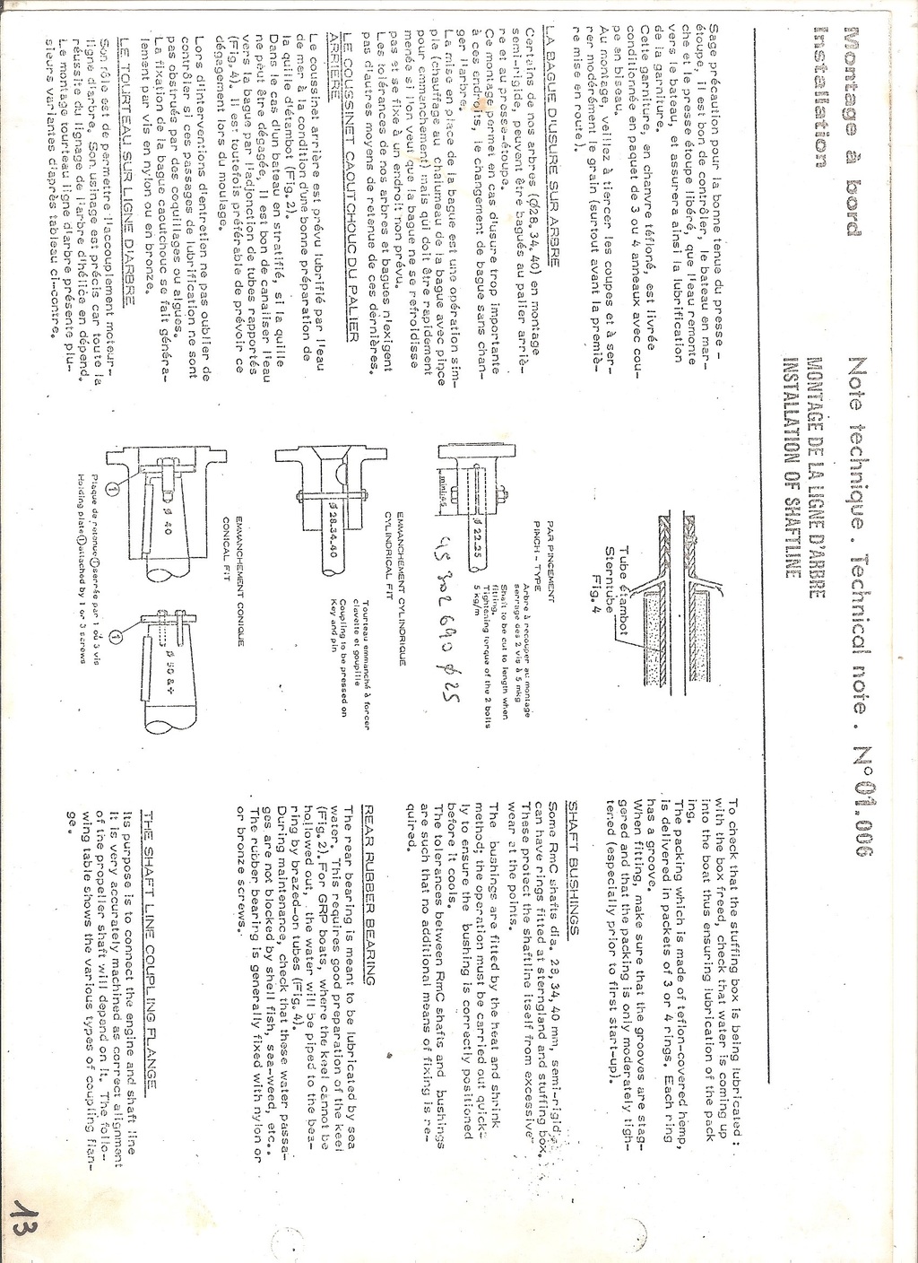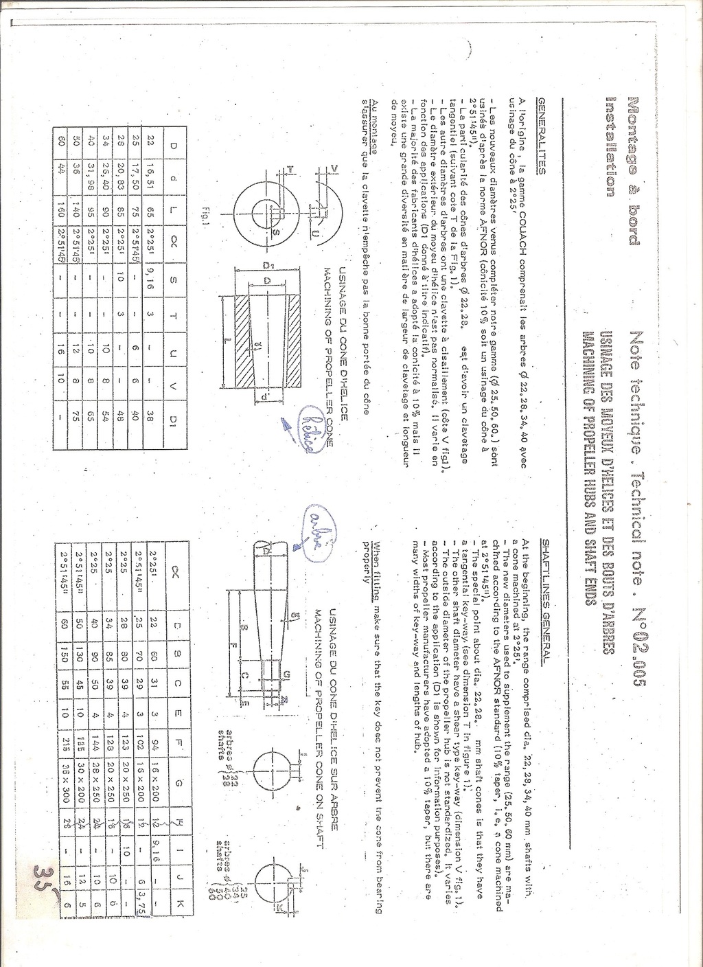 Les hélices tournaient à gauche , les conicités des arbres étaient différentes suivant leurs diamètres, les clavetages également...etc ! Les tubes étambots étaient en D34mm, donc bagues hydraulubes spéciales...