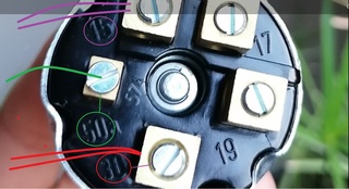 "...Sachant qu'au moment du démontage, j'avais 1 câble sur le numéro 50, 2 câbles sur le numéro 30, aucun câble sur le 15/54 et 2 câbles sur l'emplacement "INT"...".