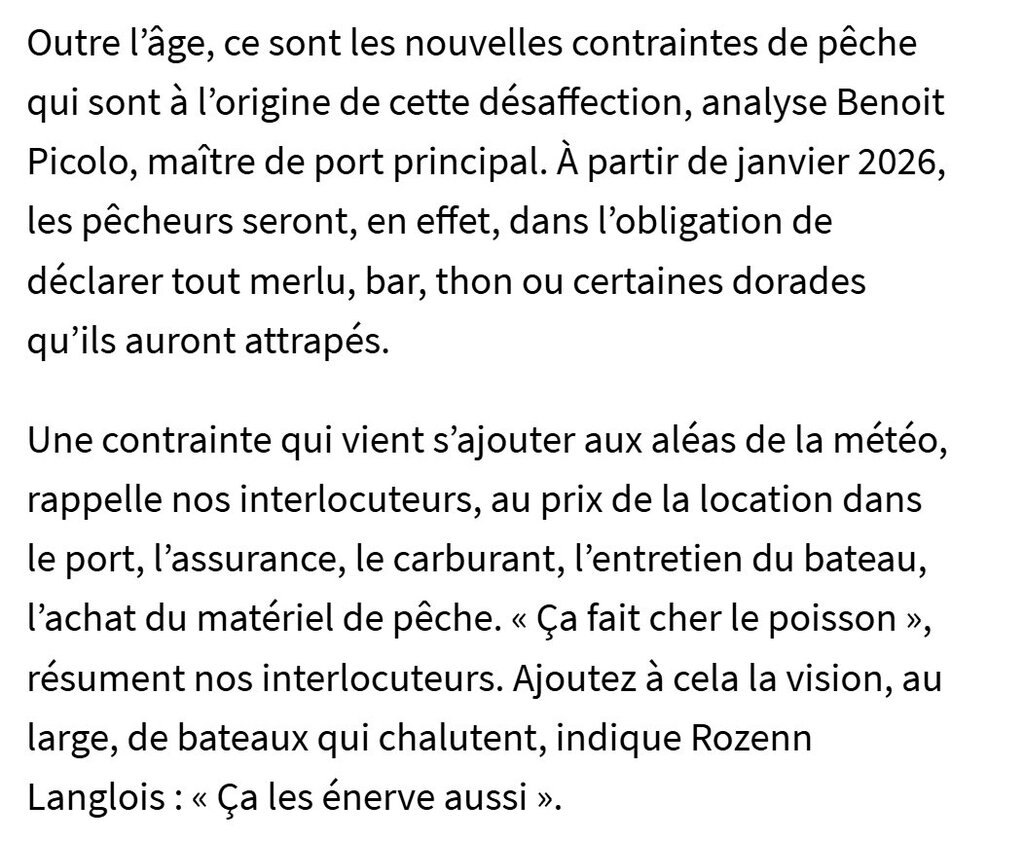 Les raisons de ce vieillissement sont multiples. « Toute une ancienne génération s’éloigne de la plaisance depuis le Covid, explique Christophe Baudry. Il y a les nouvelles réglementations autour de la pêche, mais aussi le fait qu’on pêche moins qu’avant. »