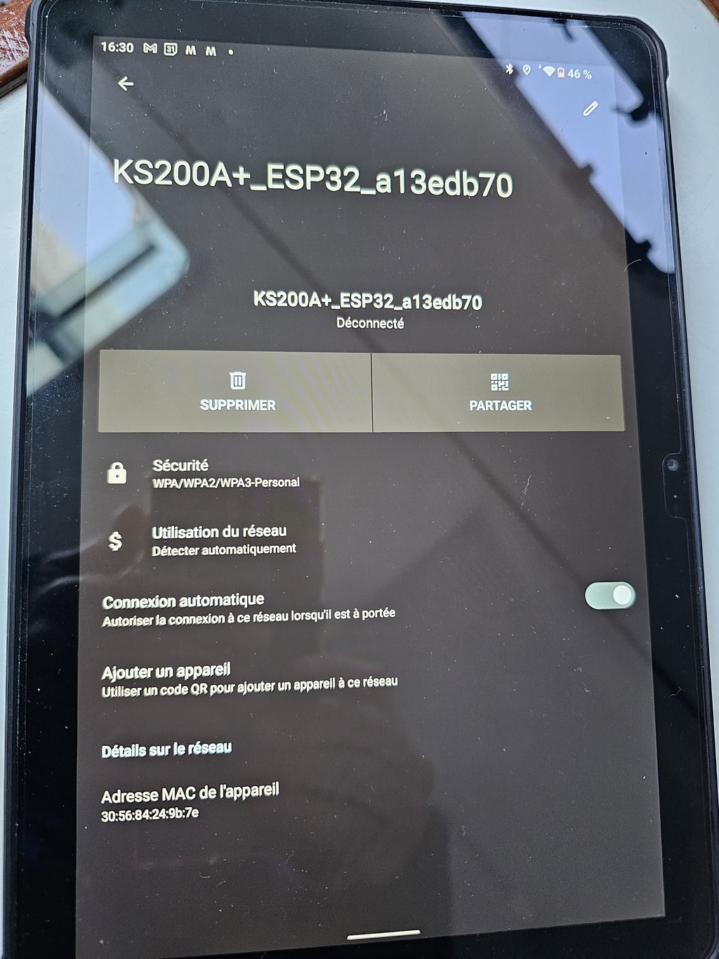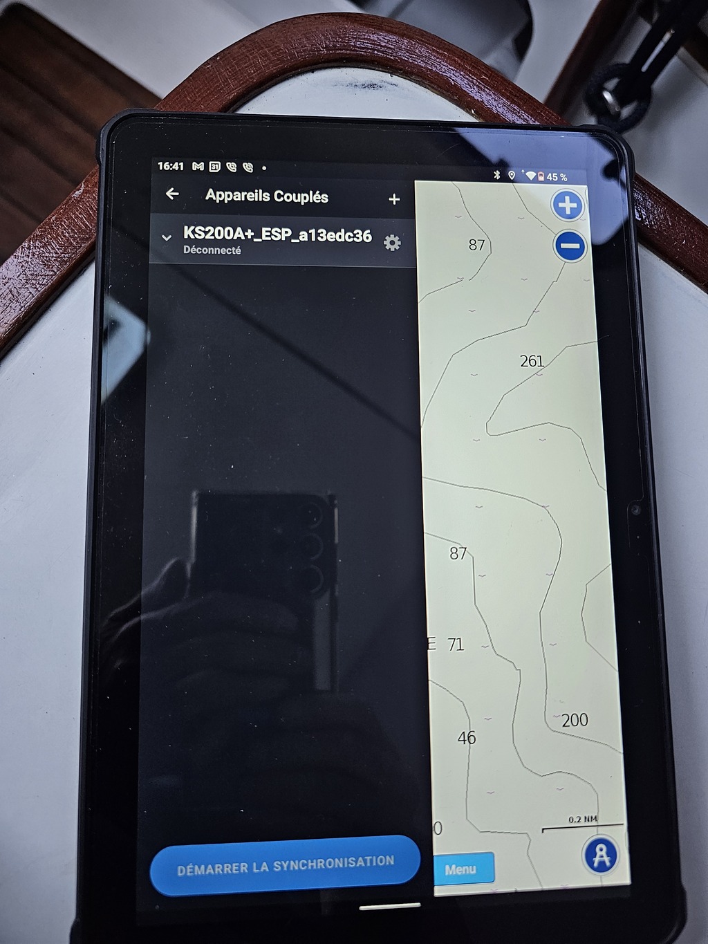 Par contre je n'arrive pas à le connecter sur ma tablette android. Je viens de me rendre compte que dans l'application NAVIONICS le nom de KS200+ ESP_...etc.. n'a pas la même extension ainsi que le HOST qui fonctionne en 192.168.4.1 sur mon telephone et qui apparait en 192.168.1.1 sur ma tablette.