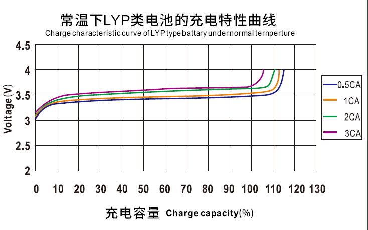 Voici la courbe de charge. Avec 3.5 V, on les charge à plus de 80% à 1 C, et plus de 100% à 0.5 C. Si on a ces moyens de charge.