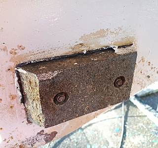 ... les anodes de coque sont bloquées sur tige filetées alu soudées à la coque, à l'aide d'écrous en alu. Une bande de chambre à air épaisse découpée à la forme de l'anode est interposée entre la coque et l'anode. Pas de Mastinox. Une paire d'anode me fait entre deux et trois ans.