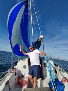 Mais lorsqu'il y a un peu d'air 1,5 à 1,8 nœuds, pour éviter de mettre le moteur je me pose la question d'acquérir un [b]très grand spi[/b] utilisable dès 60° du vent. Petit largue, travers, grand largue et vent arrière pour augmenter de façon significative ma vitesse.