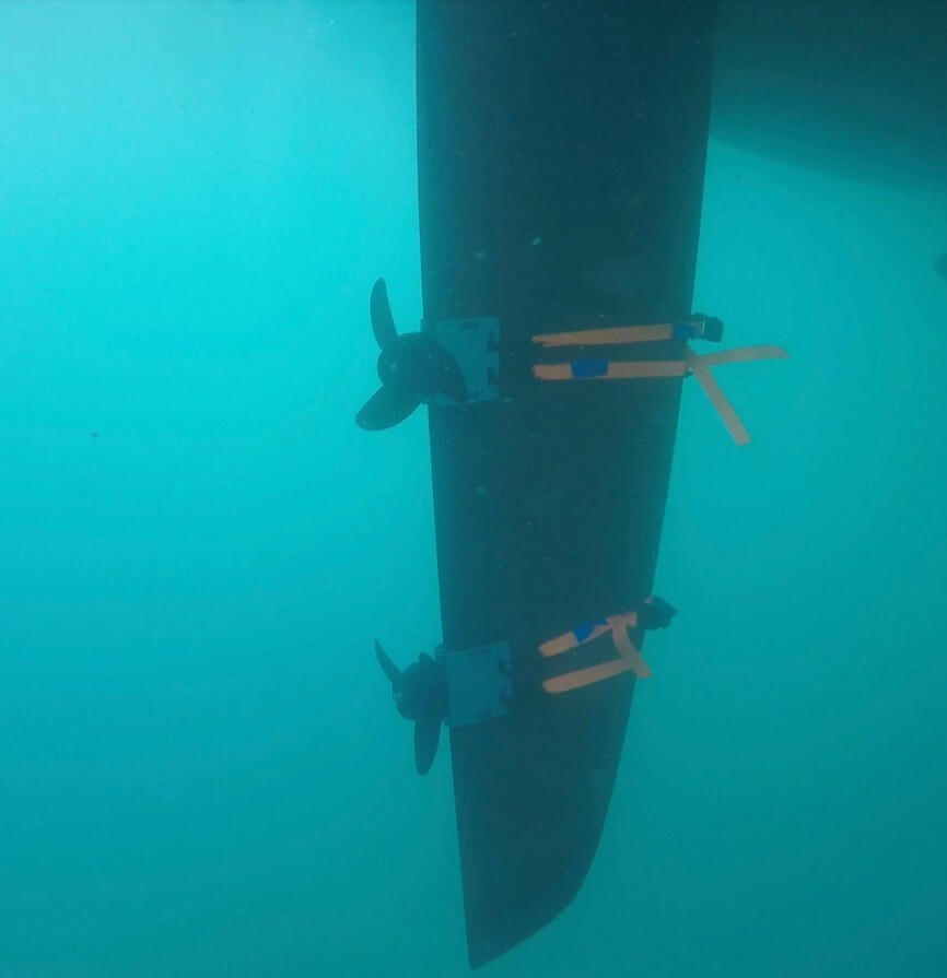 Je penserais à un système démontable un peu comme sur la photo en annexe mais la partie métallique (plaque en U) sur laquelle l'hélice est fixée serait 20 cm plus longue et équipée de pointes profilées de manière a faire le moins de trainée possible. Ca tiendrait avec des lanières comme sur la photo. Bon marché, rapide à mettre, rapide à retirer, ce vend au prochains qui passent quand on n'en a plus l'utilité. On devrait monter un atelier :-)