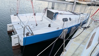 Le bateau est à l'eau depuis une semaine à la Trinité-sur-Mer. Il me reste un peu de matelotage à faire, je devrais pouvoir naviguer le week-end prochain.
