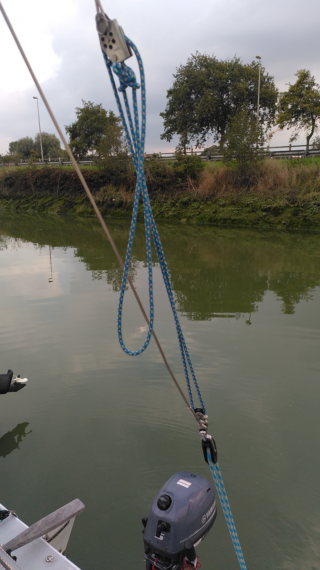 J’aurais pu faire plus petit mais le truc soutient la bôme et la voile car je n’ai pas de halebas rigide et ce n’est pas du dyneema c’est assez élastique et plutôt léger car tressé très lache c’est aussi très facile à épisser