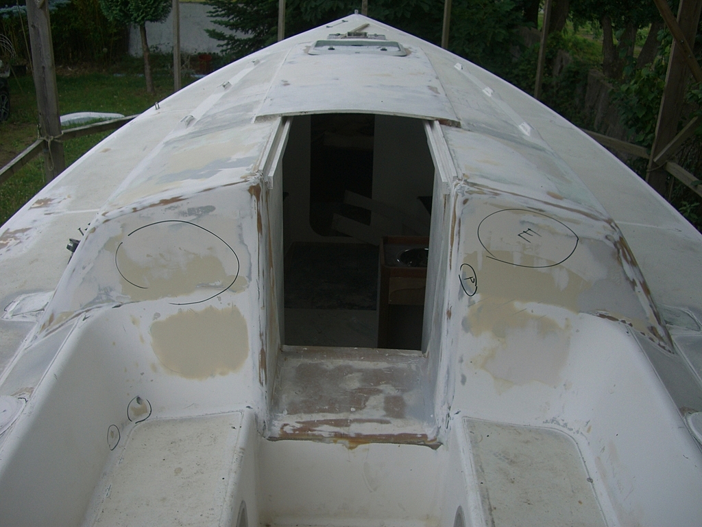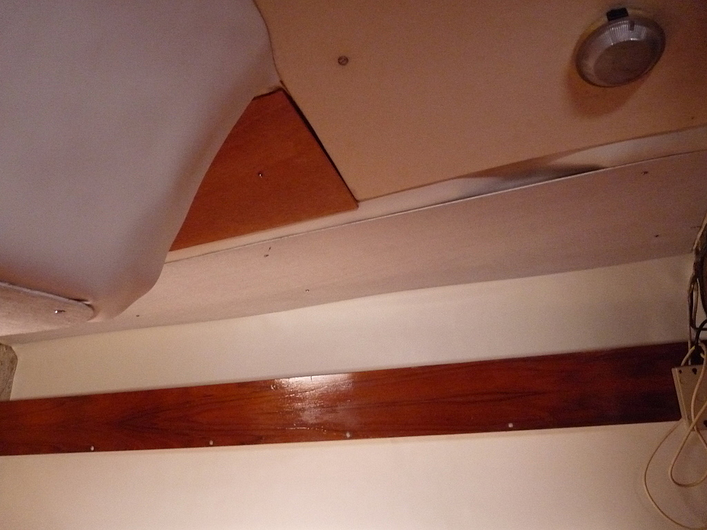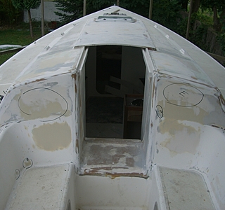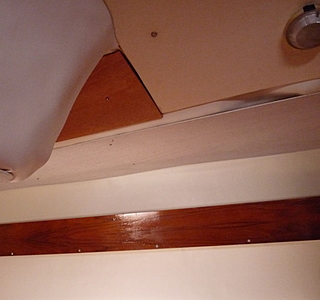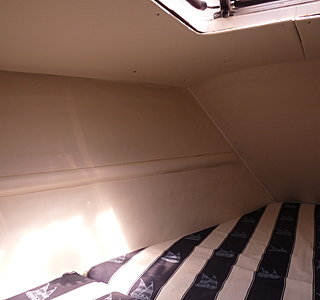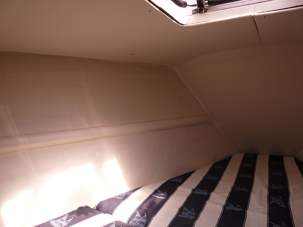 nous venons de mettre un article sur la rénovation de notre sélection "Ribambelle", la foudre avait noirci tout l'intérieur, nous avons enlevé tous les vaigrages , nettoyer la mousse ,brosser et aspirer, puis 2 couches de peinture blanche spéciale cale et caissons.