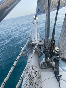 Je précise, c'est un geenaker (60m2) très léger que je ne sors que par petit temps pour m'éviter de faire du moteur donc pas des efforts terribles.