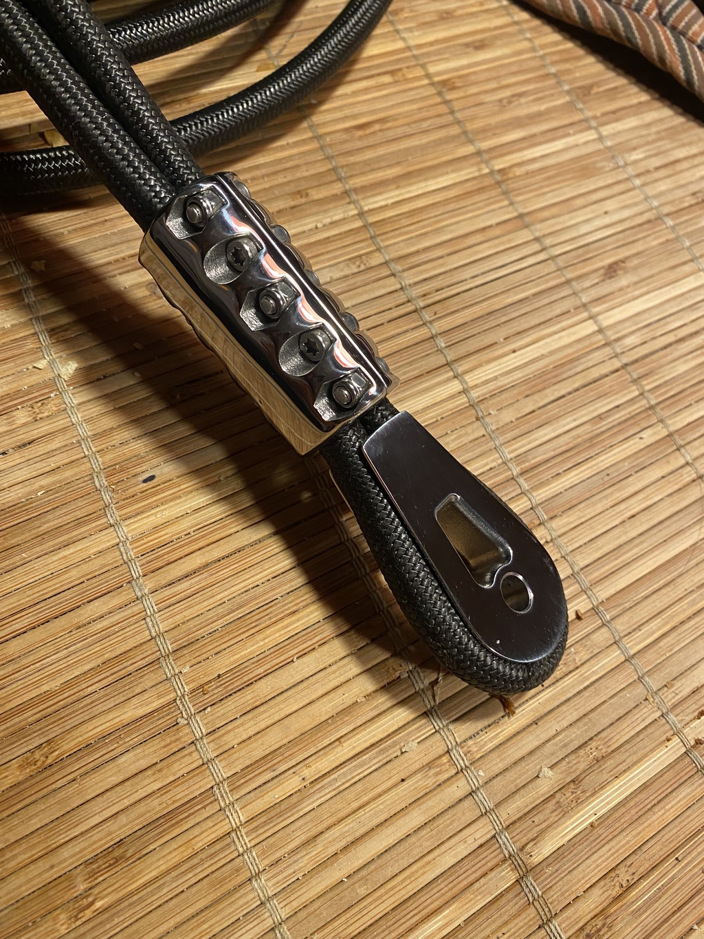 J'ai fait l'epissure du bout sans fin un peu rigide, ça force au passage de la poulie parfois...