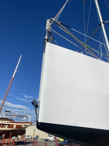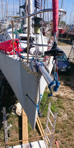 James :Oui j'ai vu des bouts dehors comme ça, j'ai fait des sorties avec un pote qui avait un 6,50 équipé ainsi, c'est démesuré et ça marche !1,50m c'est beaucoup,si en plus le franc bord de l'étrave n'est pas trop haut-en comparaison avec mon bateau qui fait 42 pieds-la sous barbe force pas mal.Quand j'avais en fonction le pied qui faisait outrigger de manière classique sur la sous barbe on sentait bien la différence,la traction est plus vers le bas,moins en compression .Les tubes encastrés dans l'étrave qui permettent la rétractation dans la coque du bout dehors sont pas mal mais faut faire un truc très précis et avoir la place.Un pote l'a fait sur un gros 16 mètres c'est joli et les renforts impressionnants.·le 22 sept. 21:32