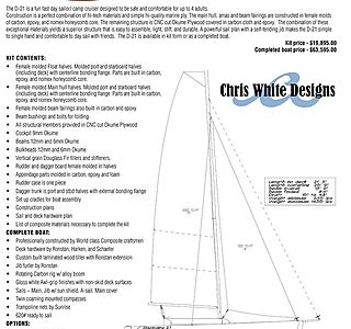 J' aime bien les bateaux de Chris White. Les 2 Juniper étaient à vendre récemment, assez semblables à Pat's, ce qui est normal vu l' utilisation du Constant Camber mais je préfère l' intérieur de Juniper, en particulier l'espèce de siège elliptique, très ergonomique (désolé pas de photo...)