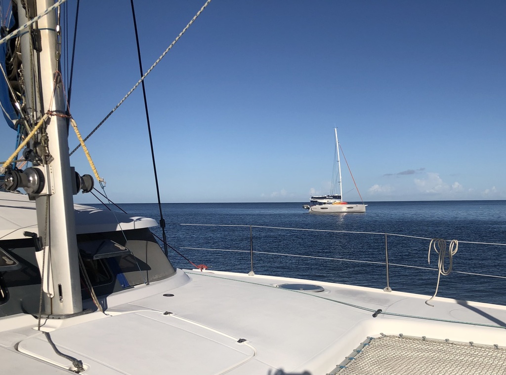 Hier aux mouillages au bourg d Arlet , 4 catas de locations ( les monocoques se louent plus )3 Bali et un Lagoon, il y a de plus en plus de Bali sur l eau en location