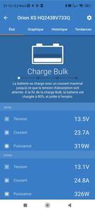 Par contre mon chargeur à quai qui est un TBS électronique OC 12-60 charge lentement et envoi que un courant de charge de 4Ah si je démarre le moteur j'ai un courant de charge de40Ah
