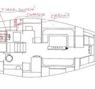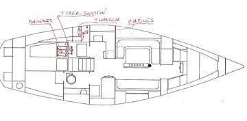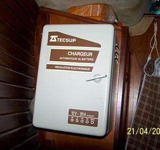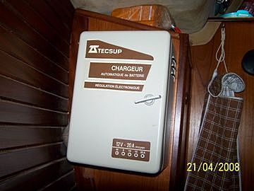 Les batteries (3 * 110Ah (vetus)) sont situées sous la couchette dans la cabine arrière. Pour le chargeur, je ne sais pas encore, faut que je réfléchisse où je vais le mettre. A priori, je pense sur la cloison du coffre où il y a les batteries. (proche des pieds quand on est débout dans la cabine arrière.