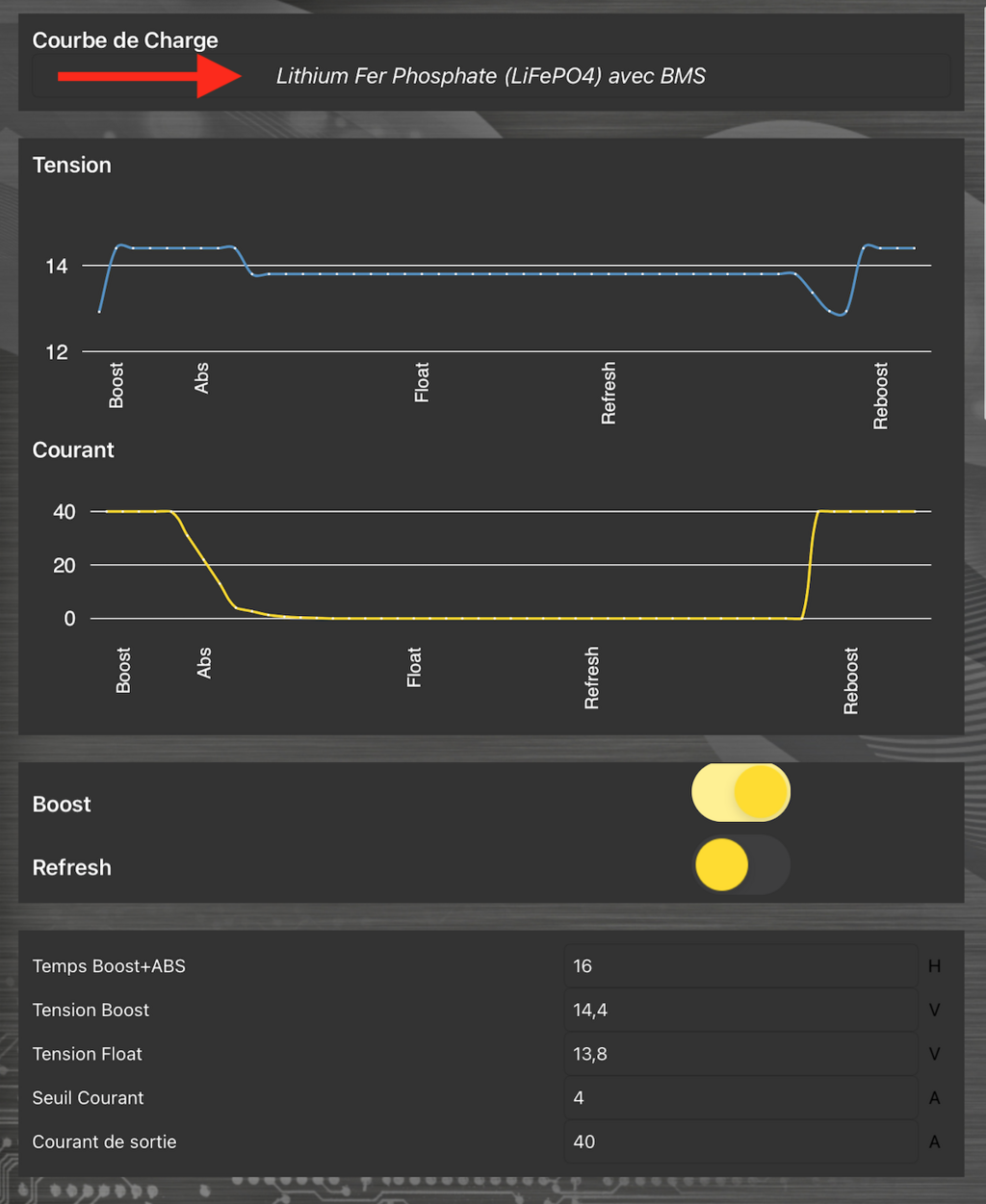 Évidemment l’idée est de mettre un chargeur dcdc derrière le chargeur acdc c’est d’assurer une charge optimale des lfpo4