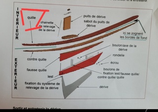 Le lest est fixé par 6 tige filetée qui traverse la contrequille et la quille. Voir photo.