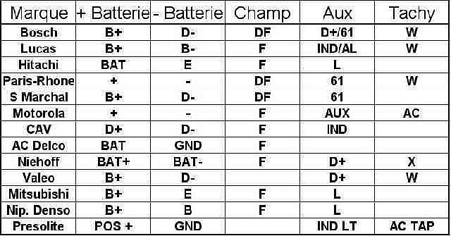 Je resume mon alternateur est un hitachi donc d'apres le tableau je me monte sur la borne L et ne remonte pas le fil du faisceau car il n'y a pas de borne F