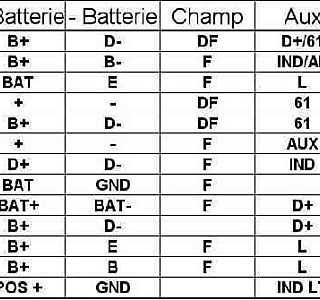 61,ex.df. la borne L généralement c'est la lampe pour les alternateurs dits "essence" qui n'ont pas de triolet donc ne s'autoexitent pas autrement on ne peut plus arreter le moteur en coupant le contact ,ce qui n'est pas le cas du diesel .