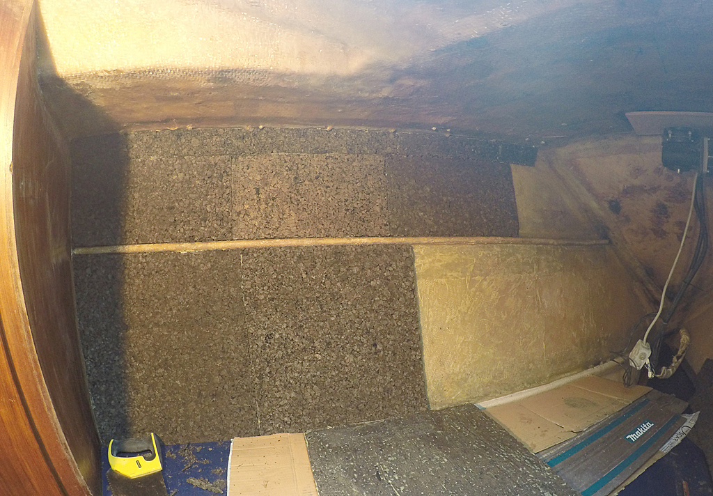 Bonjour, après pas mal de réflexion sur l'isolation de mon bateau j'ai collé des plaques de lièges (2cm d'épaisseur).
