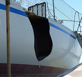 J'ai acheté le bateau pas cher, après qu'il se soit fait abordé par un 40 pieds.