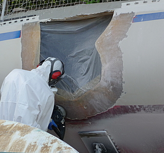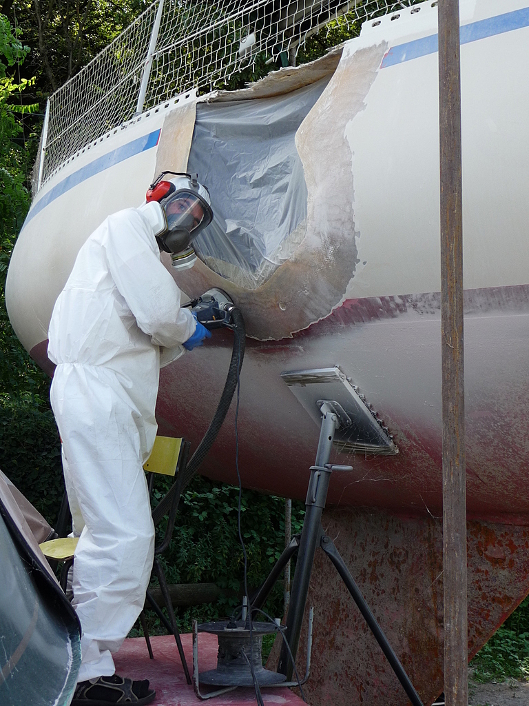 Attention aussi lors de la reprise de stratification : Si la résine utilisée contient de la paraffine et qu'elle est polymérisée depuis plus de 12 heures (les fabricants disent 24 à 48 heures) il faut impérativement poncer avant.