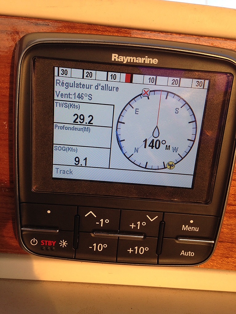 En video (si j'arrive à la mettre) un départ pour la Corse, 25/27 nds de vend avec une houle par l'arrière qui stimule un peu le pilote auto :D mais nous a assuré une bonne moyenne (faite au large de l'île du levant)