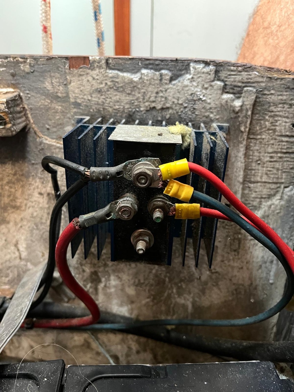 Je suis en train de refaire l elec de mon Jeanneau Melody et je bloque sur une pièce installée à proximité du parc batterie. Voir photo ci-dessous . Merci à tous et toutes pour vos réponses