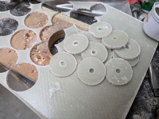 Reprise de la fabrication de soft padeyes avec des chutes de tissu de verre et de Dyneema.