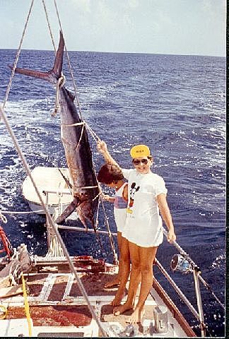 c'était à 70 miles au nord de majorque avec pour seul équipement une ligne garcette 25mètres et gros fils de pèche 25 mètres!!! le tout enbobiné sur une vulgaire planche en plastique frappée sur un des taquets...