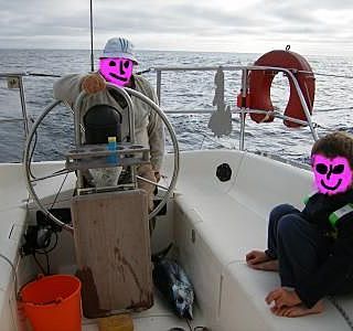 A la voile ,sans pilote auto,sans canne et emmerdé par un bimini, un HB sur le balcon, fer à cheval etc..