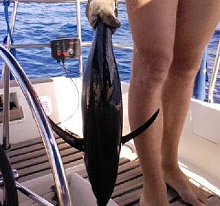 Sur un voilier, pêcher à la traîne et à la main, donc sans cannes, espérer des poissons plus gros, est utopique…il vous prendra trop de fil, sondera, et vous ne pourrez le tenir.