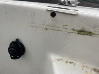 J’ai envie pu venir prendre une photo du trou permettant le verrouillage de la baille à mouillage, par lequel entre l’eau quand on enfourne.