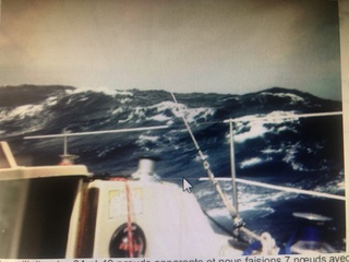 La houle résiduel après une bonne dépression peux être vraiment énorme mais avec un très longue période, elle ne fait pas rouler le bateau, elle est juste majestueuse et impressionnante. C est presque impossible d' évaluer la hauteur ds ce cas.