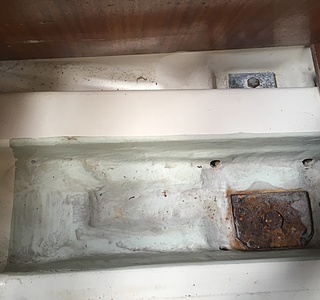 Océanis 331 :j'ai une fissure le long du contre-moule (paralléle à la quille)et une varangue avant le cabinet de toilette qui a des traces de ponçage et non fissurée avant le cabinet de toilettes.