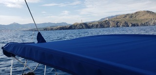Les cagnards et la housse de bimini sont parfaits ! Quel plaisir d'avoir fini et de les voir en place !