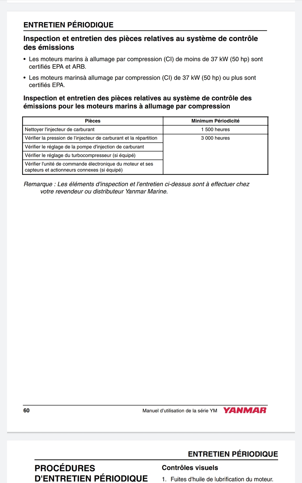 3 000 H chez Yanmar pour les moteurs 2YM15, 3YM20, 3YM30 AE, voir la PJ.