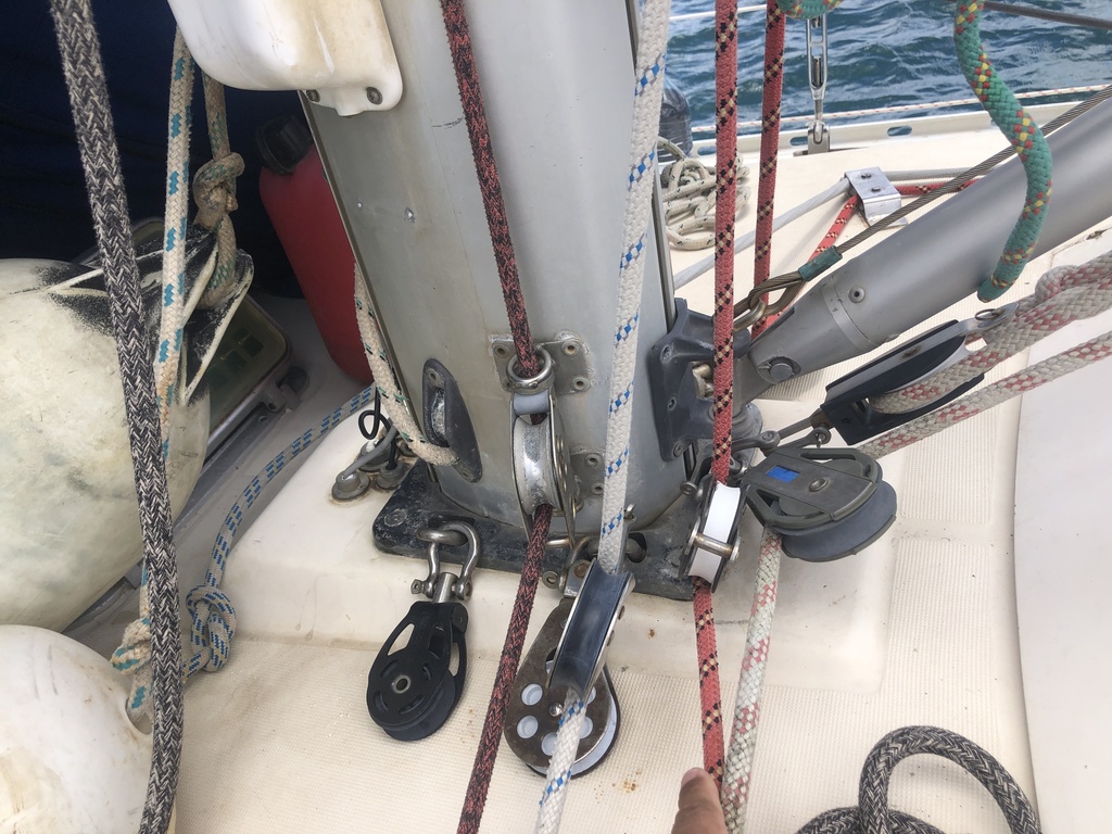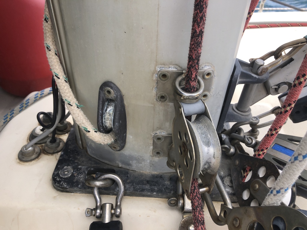 James :Par contre je vois la platine inox de poulie bien attaquée par l'électrolyse,ou plutôt le mât.Si tu la démontes il y a probablement des trous dessous.À résoudre tous les problèmes de ce type en isolant,pâte tefgel,plaque plastique d'interface,etc...·le 15 sept. 07:30
