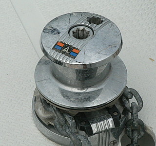 Moi j'utilise cette petite chose achetée d'occasion (marque lewmar) sur mon cata de 7,50 m et relever le mouillage (ancre de 10 et 12Kg) devient facile et très rapide, c'est mon épouse (50Kg manivelle de winch comprise) qui s'en occupe.