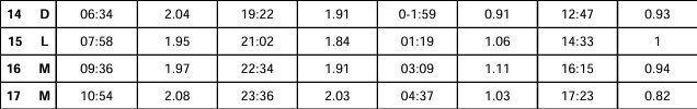 attention, ce ne sont pas les points de la courbe de progression de la marée, mais bien des données pour la marée haute ...