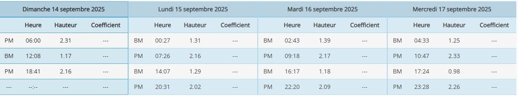 j'ai par exemple pour la marée haute de ce soir 13/09/2025.