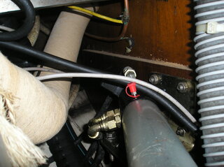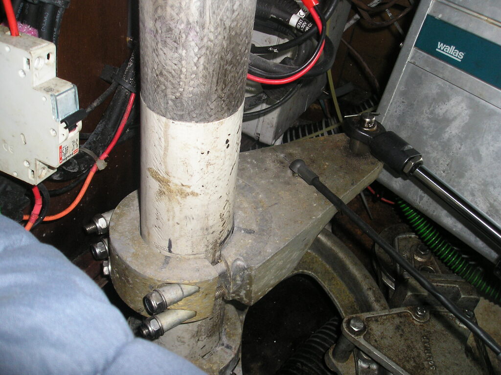 Actuellement, je suis sur mon boat et comme promis Je t'envoie les photos que je viens de prendre afin de te donner une idée de l'installation du vérin de pilote. le vérin est fixé d'un coté sur la cloison de la cabine arrière et de l'autre sur un bras au dessus du secteur de barre.