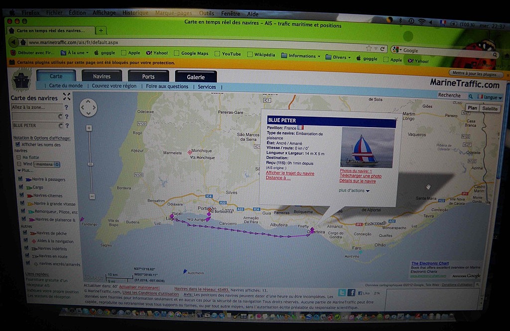 Oui, l'application en question c'est "Marine trafic": avec une liaison internet active (près des cotes) elle te renseigne sur l'activité des très gros. Pas utilisé personnellement, je continue pour l'instant d'écarquiller les mirettes, mais big brother s'en va en mer :-)